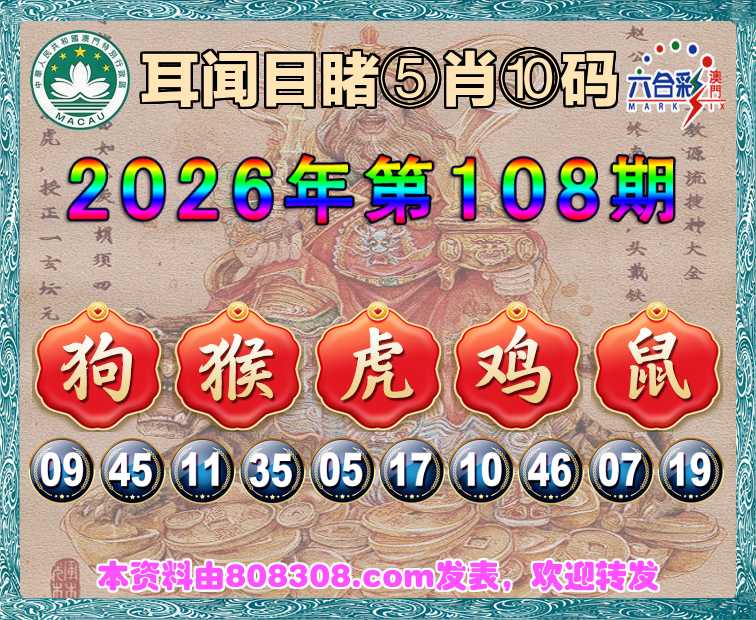 108期: 🥽『耳闻目睹』 🥽⑤肖⑩码🥽【猴虎鸡鼠】开:狗45准上榜高手