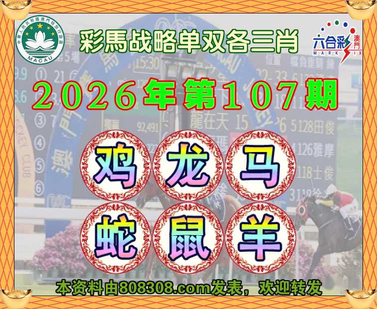 107期:【彩馬战略】 🧤单双各三肖🧤【鸡.龙..蛇.鼠.羊】开:马49