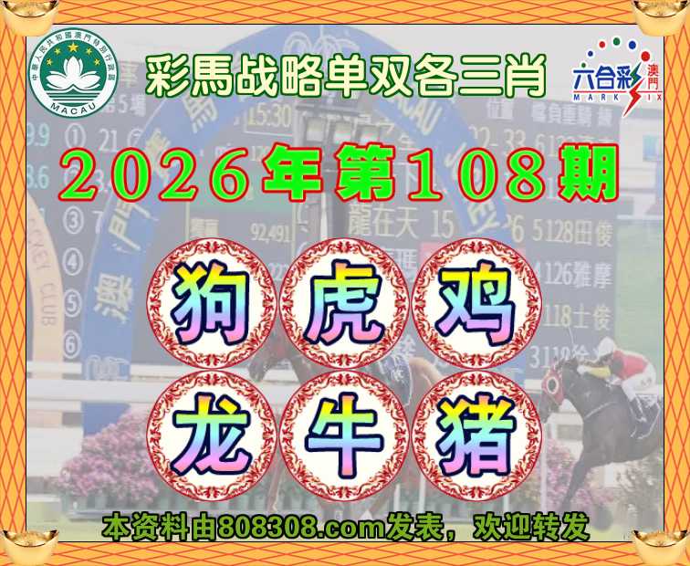 108期:【彩馬战略】 🧤单双各三肖🧤【.虎.鸡.龙.牛.猪】开:狗45